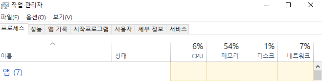 - Ctrl + Shift + Esc 키를 눌러 작업 관리자를 엽니다.