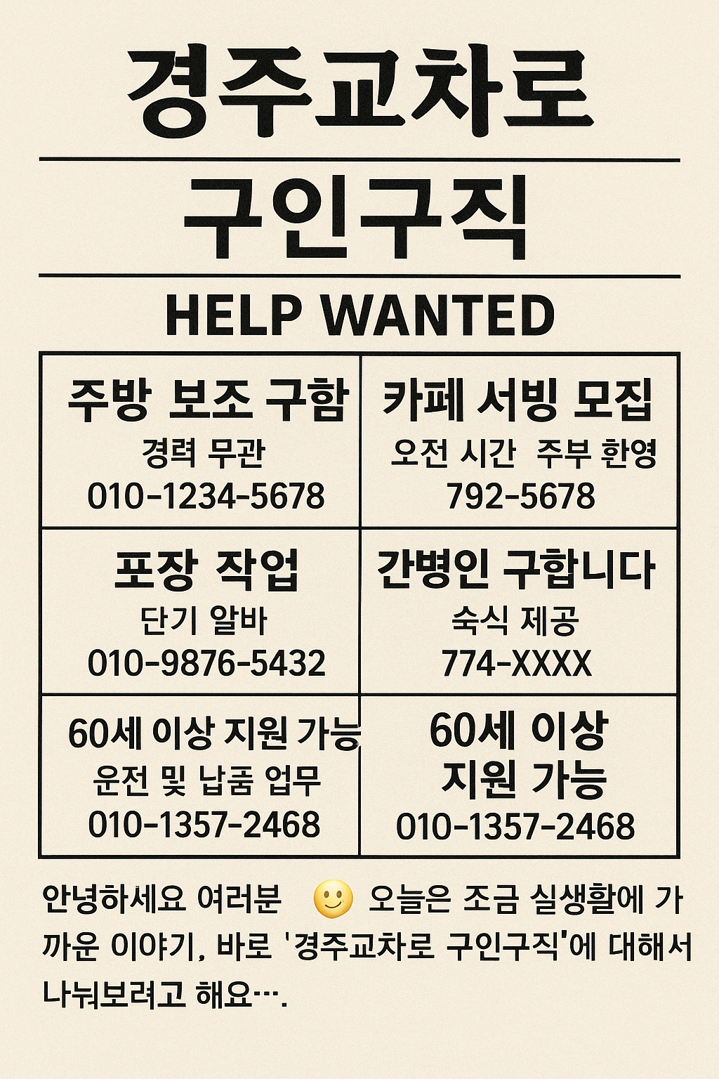 안녕하세요 여러분 😊 오늘은 조금 실생활에 가까운 이야기, 바로 ‘경주교차로 구인구직’에 대해서 나눠보려고 해요.