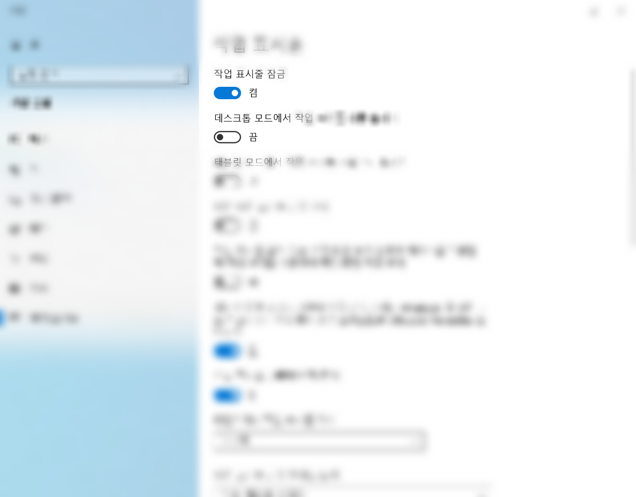 꼭 기억하세요. '작업표시줄 잠금'을 '켬'으로, '데스크톱 모드에서 작업 표시줄 자동 숨기기를 '끔'으로 조정하셔야만 문제가 해결될 수 있습니다.