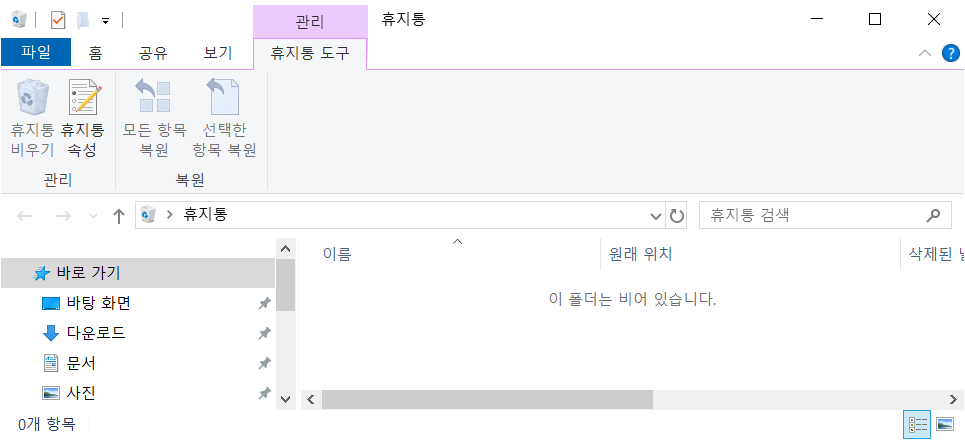 바탕화면에 어떤 폴더든 더블클릭을 합니다. 심지어 '휴지통'이어도 괜찮습니다. 휴지통을 띄우고 휴지통이라고 쓰여있는 주소창을 클릭 후 '삭제'합니다. 그리고 대신에 '제어판'이라고 씁니다. 아래 사진이 있으니 참고하시고 따라 하세요.